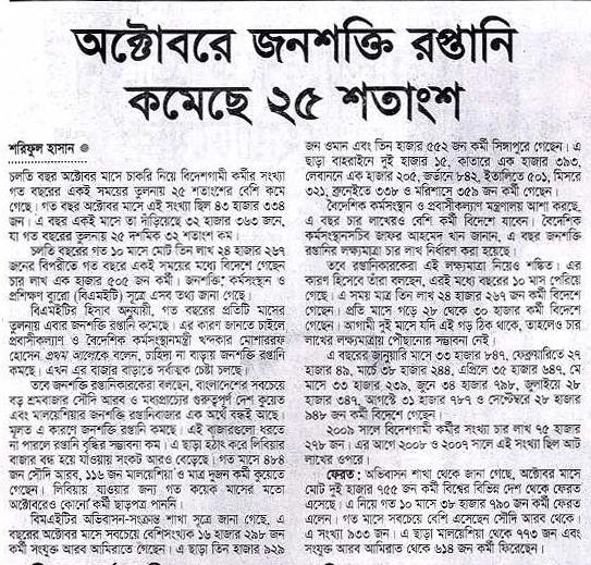 অক্টোবরে জনশক্তি রপ্তানি কমেছে ২৫ শতাংশ