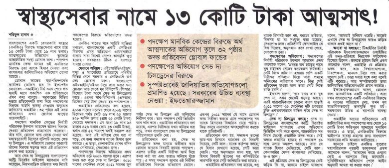 শরিফুল হাসান বাংলাদেশের একটি বেসরকারি সংস্থার (এনজিও) বিরুদ্ধে স্বাস্থ্যসেবার নামে প্রায় ১৩ কোটি টাকা (প্রায় ১৯ লাখ ডলার) আত্মসাতের অভিযোগ তুলেছে আন্তর্জাতিক সংস্থা গ্লোবাল ফান্ড। পদক্ষেপ মানবিক কেন্দ্র নামের ওই এনজিওর বিরুদ্ধে ভুয়া ব্যাংক হিসাব দেওয়া এবং কাগজপত্র জালিয়াতিরও অভিযোগ তোলা হয়েছে।গ্লোবাল ফান্ডের মহাপরিদশর্কের কার্যালয় (অফিস অব দি ইন্সপেক্টর জেনারেল—ওআইজি) দীর্ঘ তদন্ত শেষে গত জুলাই …