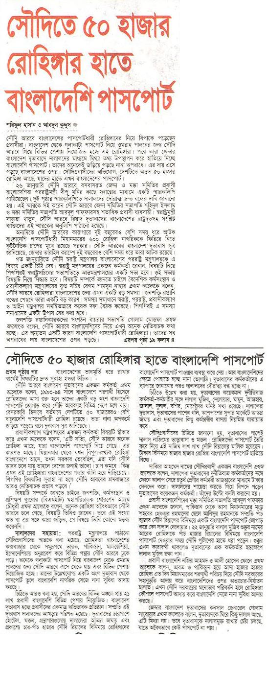 শরিফুল হাসান সৌদি আরবে বাংলাদেশের পাসপোর্টধারী রোহিঙ্গাদের নিয়ে বিপাকে পড়েছেন প্রবাসীরা। বাংলাদেশ থেকে গলাকাটা পাসপোর্ট নিয়ে ওমরাহ পালনের জন্য সৌদি আরবে গিয়ে বিভিন্ন পেশায় নিয়োজিত হচ্ছে এই রোহিঙ্গারা। পরে তারা জেদ্দার বাংলাদেশ দূতাবাসে দালালদের মাধ্যমে মিথ্যা তথ্য উপস্থাপন করে হাতিয়ে নিচ্ছে বাংলাদেশি পাসপোর্ট। তাদের অনেকেই জড়িয়ে পড়ছে নানা অপরাধে। এর দায় এসে পড়ছে বাংলাদেশের ওপর। …
