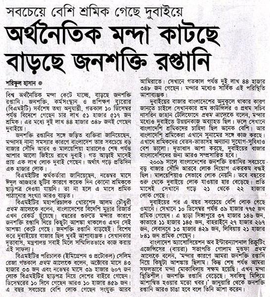 অর্থনৈতিক মন্দা কাটছে বাড়ছে জনশক্তি রপ্তানি শরিফুল হাসান বিশ্ব অর্থনৈতিক মন্দা কেটে যাচ্ছে, বাড়ছে জনশক্তি রপ্তানি। জনশক্তি, কর্মসংস্থান ও প্রশিক্ষণ ব্যুরোর (বিএমইটি) সর্বশেষ তথ্য অনুযায়ী, গতকাল ১০ ডিসেম্বর পর্যন্ত বিদেশে গেছেন চার লাখ ৫১ হাজার ৫১৭ জন শ্রমিক। এর মধ্যে দুই লাখ ৪৪ হাজার ৩৪৮ জনই গেছেন দুবাইয়ে। জনশক্তি রপ্তানির সঙ্গে জড়িত ব্যক্তিরা জানিয়েছেন, মন্দাসহ …