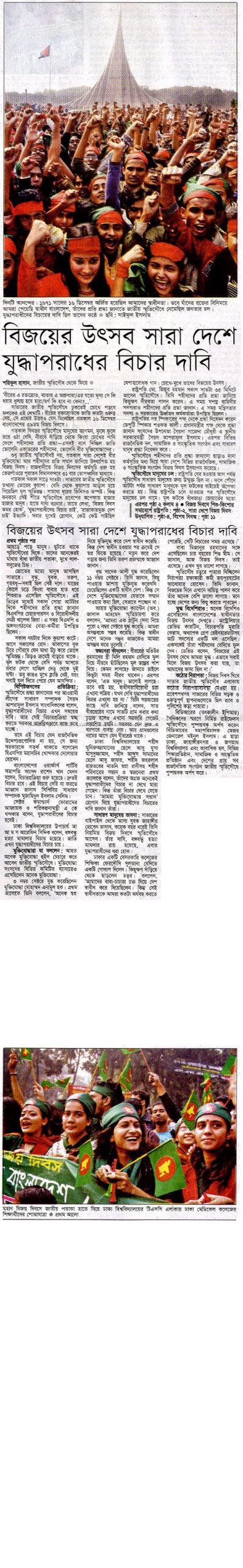 শরিফুল হাসান ‘বীরের এ রক্তস্রোত, মাতার এ অশ্রুধারা/এর যতো মূল্য সে কি ধরার ধুলায় হবে হারা/স্বর্গ কি হবে না কেনা?…’সাভারের জাতীয় স্মৃতিসৌধে ঢুকতেই চোখে পড়বে ফলকের এই লেখাটি। বীরের রক্তস্রোতকে জাতি কতটা গুরুত্ব দেয়, সে প্রশ্নের উত্তরও যেন মিলেছিল গতকাল ১৬ ডিসেম্বর বাংলাদেশের ৩৯তম বিজয় দিবসে।গতকাল দিনভর স্মৃতিসৌধে মানুষের আগমন, ফুলে ফুলে ভরে ওঠা বেদি, …